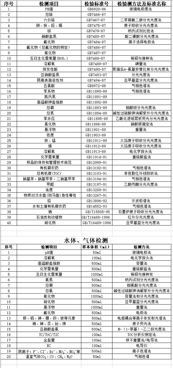 > 淡水检测项目