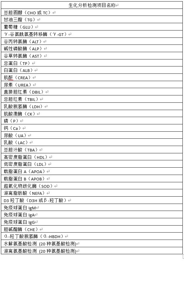 > 生化分析仪检测项目
